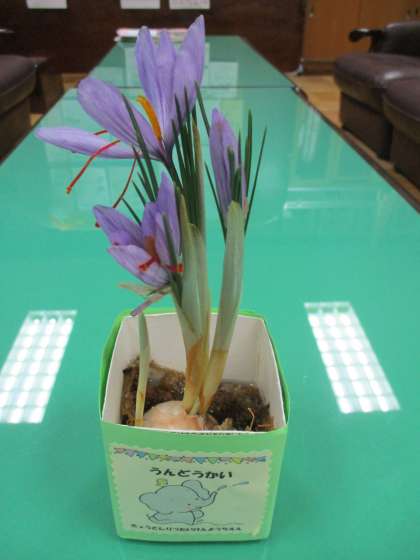 待賢幼稚園の運動会で頂いた球根が花を咲かせました。