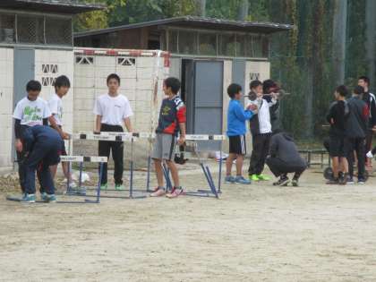 午後のグランドでは陸上部が活動を始めました。