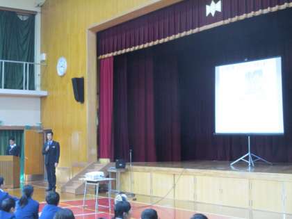 学校長の話に続いて、いつもの通り生徒を何人か指名して感想や意見を発表してもらいました。