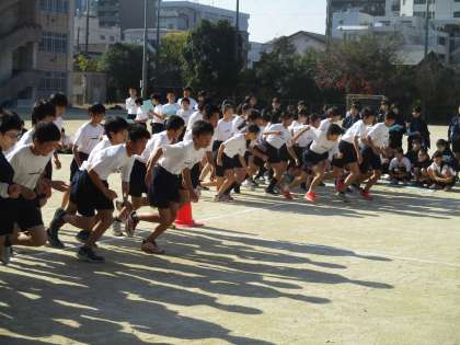 1年は体育の授業で持久走が始まりました。