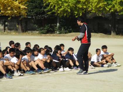 グランドに出ると、既に準備運動を終えた1年生が全員集合していました。