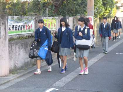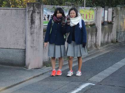 女子のスカート姿が何とも寒そうで、気の毒な気がします。