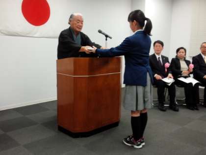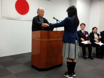 午後4時から上京税務署で、第51回中学生の「税についての作文」で入賞した人の表彰式が行われました。