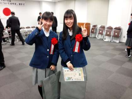 本校からは3年生の2人が「上京納税貯蓄組合連合会会長賞」と「公益社団法人上京納税協会会長賞」にそれぞれ入賞しました。