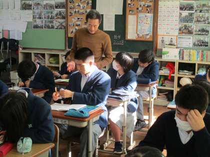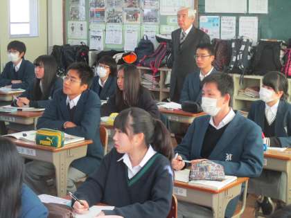 元本校校長、松尾玉樹先生が来られたので3年生の教室を中心に観て頂きました。