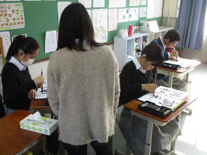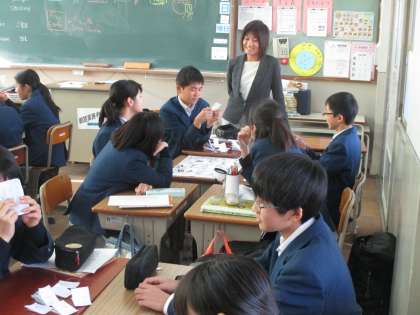 2−2は英語、ALTのジョシュ先生が作った英語のゲームに楽しそうに取り組んでいました。