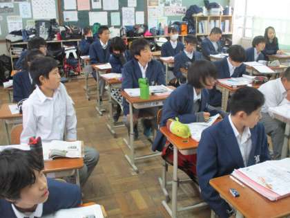 5組は英語、1組は社会です。どちらも楽しく学んでいました。