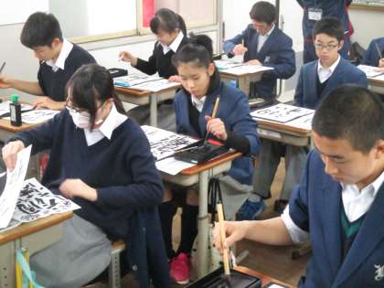 左手で筆を持つのはなかなか珍しいです。左利きの人でも右手で書く方がバランスが取りやすいのだそうです。