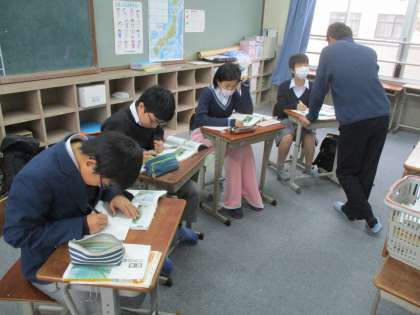 5Bは国語です。こちらも新しい取組に一生懸命です。
