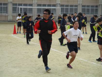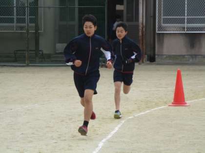 2年は、体育の授業の持久走の様子です。