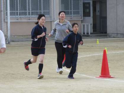 6組は体育。持久走です。3人とも大変んよく頑張っていました。男子生徒は10分の壁を破ることを目標にして取り組んでいます。