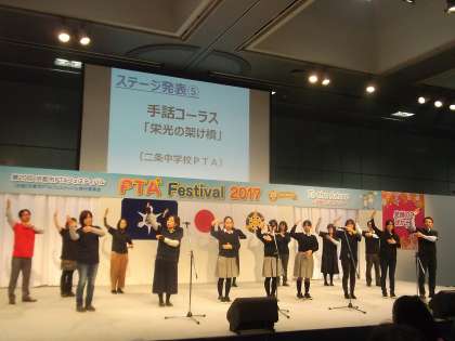 ステージ発表では,手話コーラス「栄光への架け橋」を披露させていただきました。練習を通じてコミュニケーションの輪も一層深まり,本番もみんなと一緒に楽しい時間を共有できました。たくさんのご声援を,ありがとうございました。