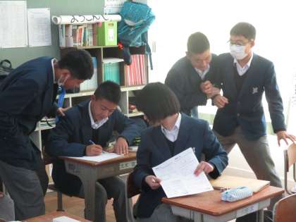 前の時間に習ったことを教え合っています。