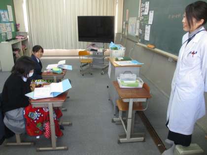 1−5では、休憩時間であるにもかかわっらず、既にいつでも授業が開始できるように支度が出来ています。