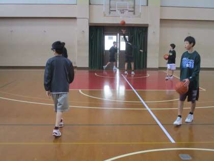 体育館ではバスケットボールが頑張っていました。