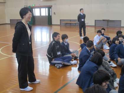 1年では、各学級の反省の後、二条中学校先生クイズで盛り上がりました。