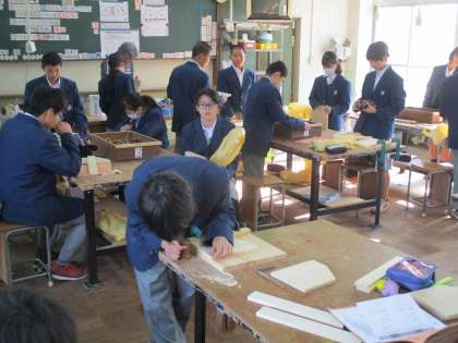 技術の時間、木材加工の時間です。