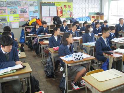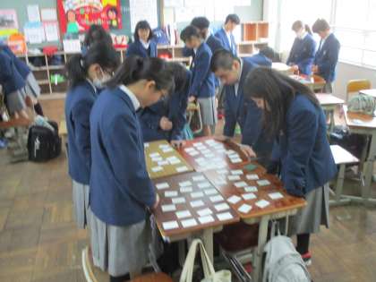 2組の英語では、新しい単語や熟語を口にする場面でよく声が出ていました。