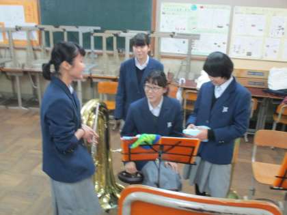 吹奏楽部はパートごとに分かれて練習を始めました。
