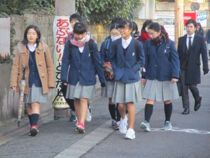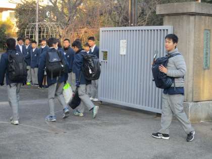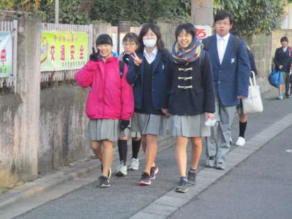 たくさんの出迎えにやや緊張気味の生徒たちです。