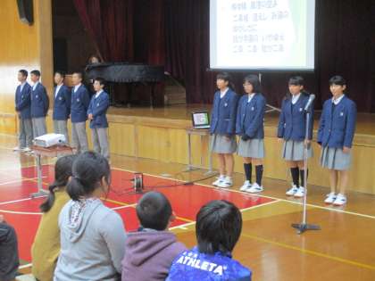 校歌斉唱の後は、中学校紹介のプレゼンです。