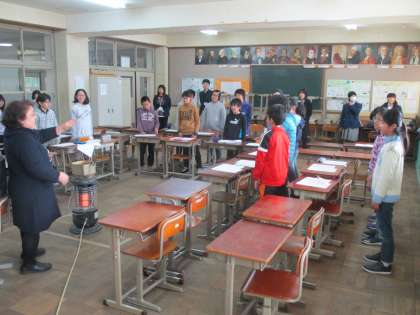 写真は、音楽と国語の時間の様子です。