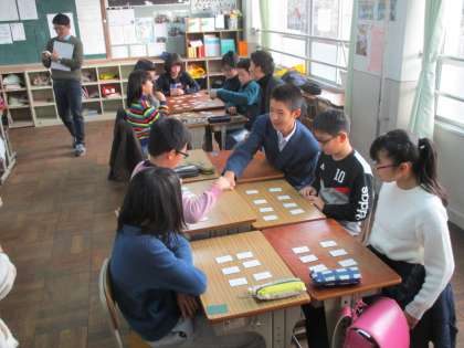 音楽では発症に挑戦、国語では百人一首に取り組んでいました。
