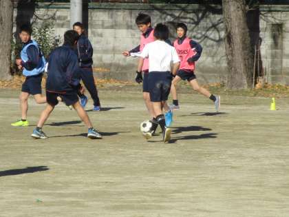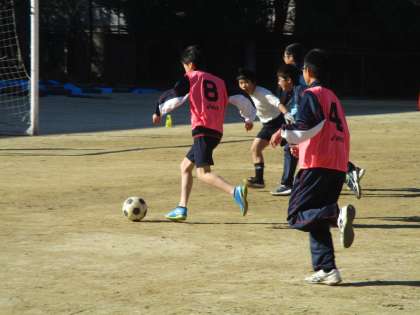 体育の時間、男子はサッカーです。
