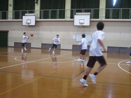 男子バスケットボール部は、今日も激しい練習をしていました。