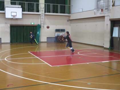 女子バスケットボール部は、安祥寺中学校に来てもらって合同練習です。