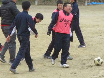3時間目、2年は体育でした。男子はサッカーに興じています。