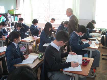 3年は、明日からの「学年末テスト」に向けて、自学自習の時間にしているクラスが多かったです。みな、明日からのテストに意味を十分に理解しているので、教室内の雰囲気もとてもよかったです。