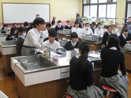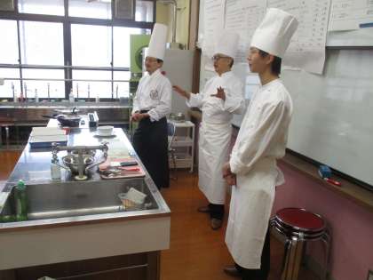 出張から帰ってきたところ、3時間目の授業に間に合ったので調理室へ駆けつけました。ちょうど、シェフへ質問をしている場面でした。