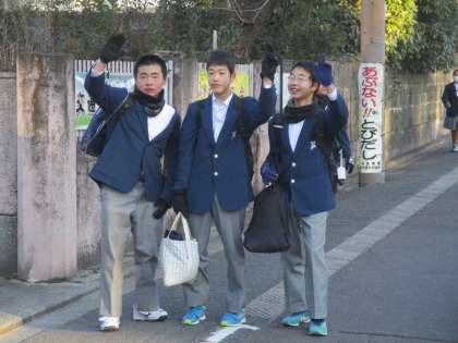 強烈に寒い朝になりました。校門に立っていてもじっとはしていられないくらいです。