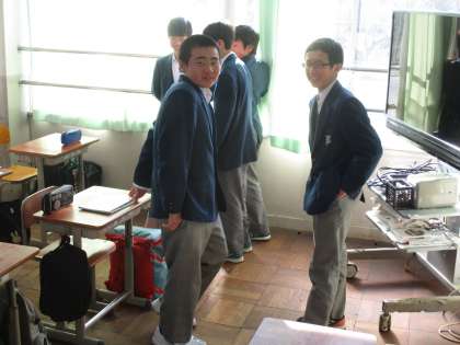 勉強している人たちも居ます。前の時間の復習でしょうね。