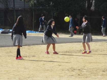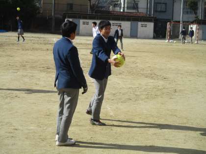 こんなに寒いのに、多くの生徒がいつものようにグランドで元気に遊んでいました。