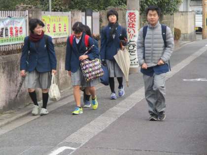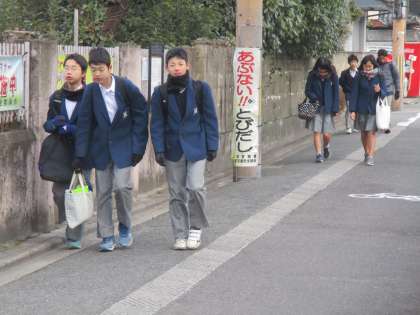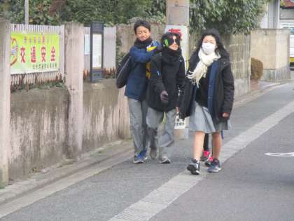 そんな中、中学生ですねえ、先を行く生徒へこっそりと迫って「だーれだ!」の瞬間をカメラがとらえました。