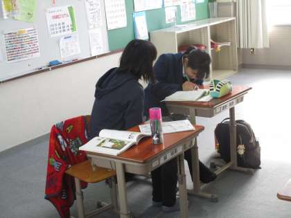 5組は国語、1組は英語です。英語では聞き取り問題に取り組んでいました。こうして、毎回トレーニングしていれば、確実に聴く力がついていくと思います。