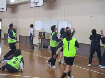 3年生の体育に様子です。ちょうど小休止になったので、早々にグランドから体育館に場所を変えました。
