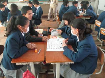 1組は家庭科。しっかりととグループ学習をしています。
