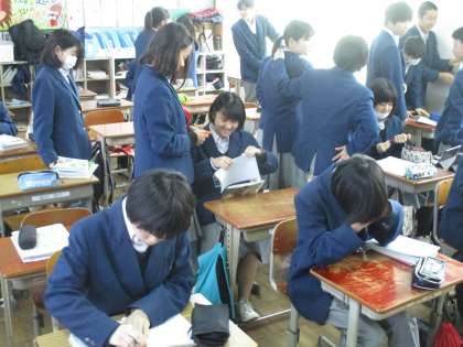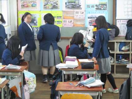 ここからは休憩時間の様子です。2組の教室からのぞきました。