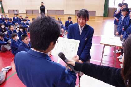 表彰式もしっかり生徒が行っています。
