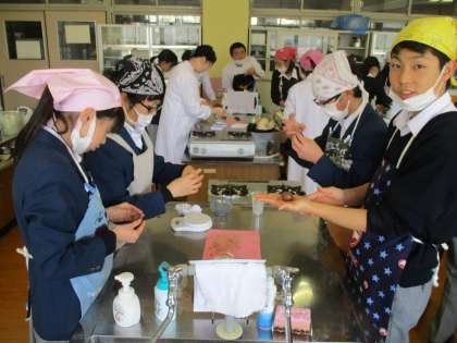今週月曜日と本日、2年で和菓子作りとお茶の体験学習をしています。