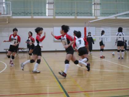 多くの学校が本校にやってきています。最初の試合は、セットカウント1−1になる校ゲームでした。