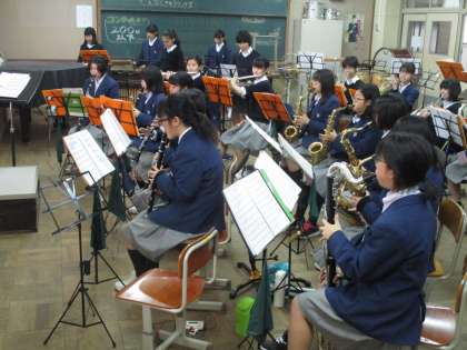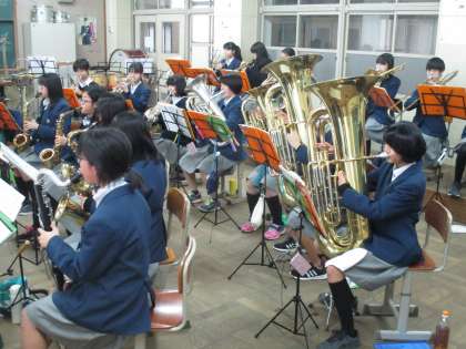 吹奏楽部が、午前のパート練習を終えて合奏を始めました。