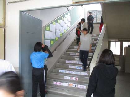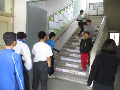 陸上部は、雨でグランドが使えないため階段を使った練習です。