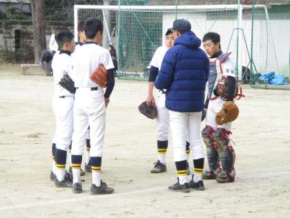 野球部は、嵯峨中学校を迎えての練習試合です。