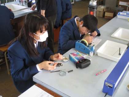 決勝の観察です。虫眼鏡を用いて結晶を詳しく観察し、スケッチします。