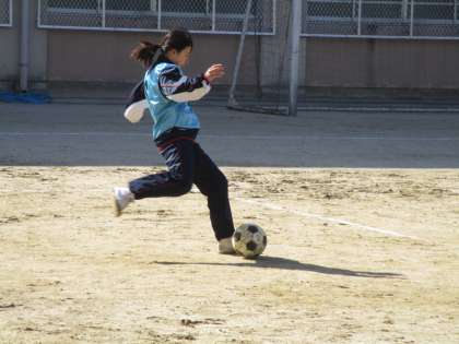 3・5組の体育です。女子のサッカーでは、グランドコンディションが悪いため、転んだ生徒は泥だらけになっていました。