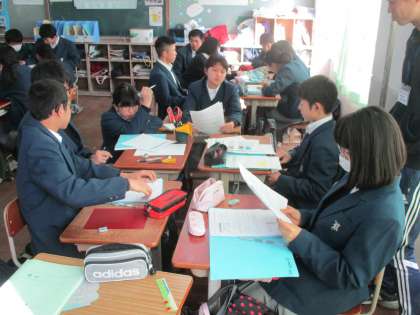 2年は、来年度の春に行く沖縄への修学旅行の事前学習です。